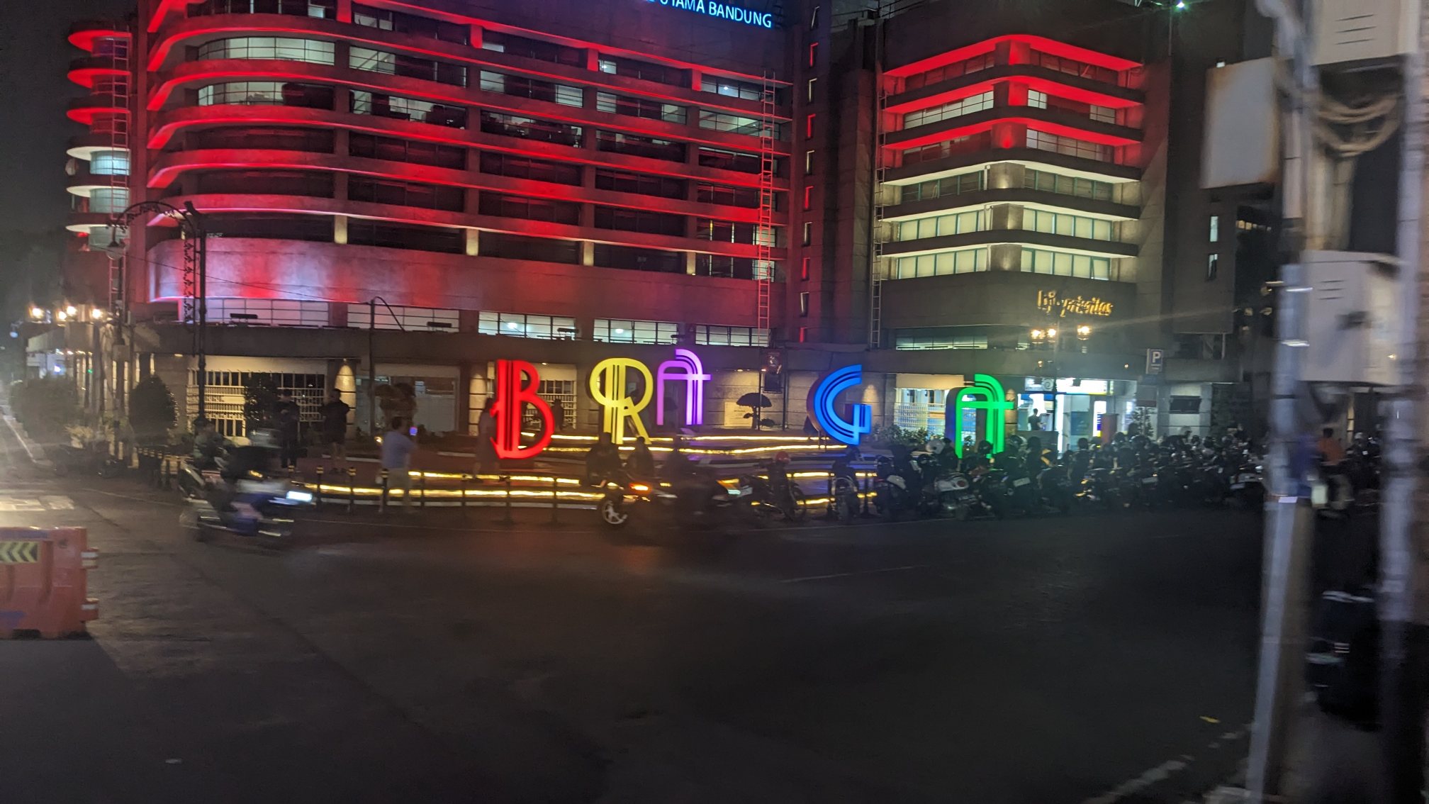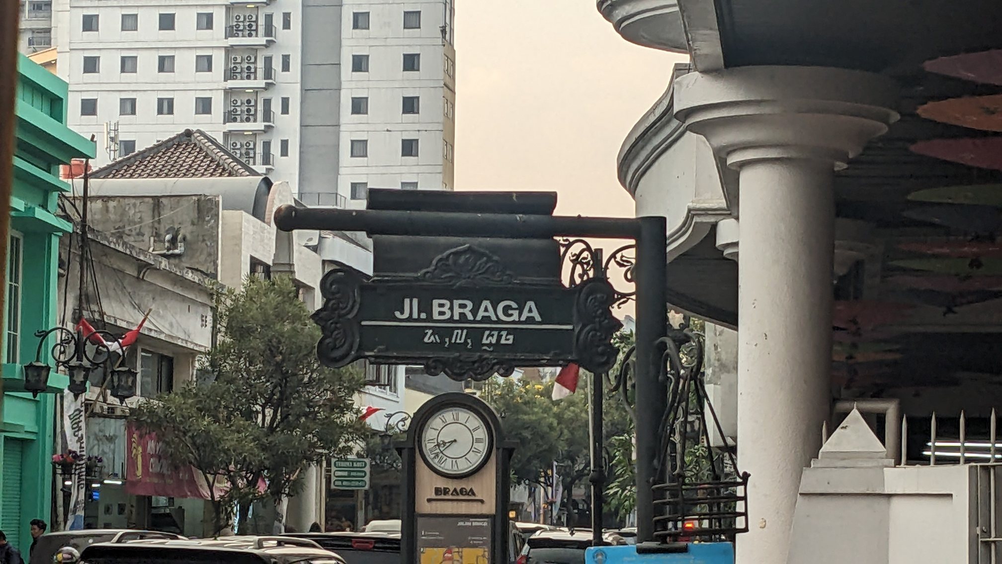 Nous en profitons pour passer devant la mosquée, la place Alun Alun sur laquelle les gens marchent pieds nus, et la rue de Braga, une des rues les plus animées de la ville.